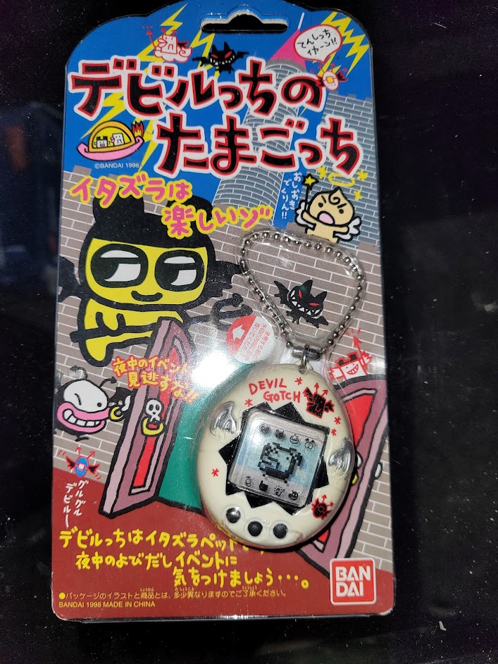 Welcome to my Devilgotchi page! Among the rarest Tamagotchis like the Yasashii, Oceangotchi (English), Santagotchis, etc, these Devils are really rare, really pricey, but a must-have in any vintage collection. Here I'll tell you all about my experiences with the Devilgotchi released in September 1998. This page is heavily inspired by the websites Ginjirotchi.ca and The Mouse House. Please check them out!