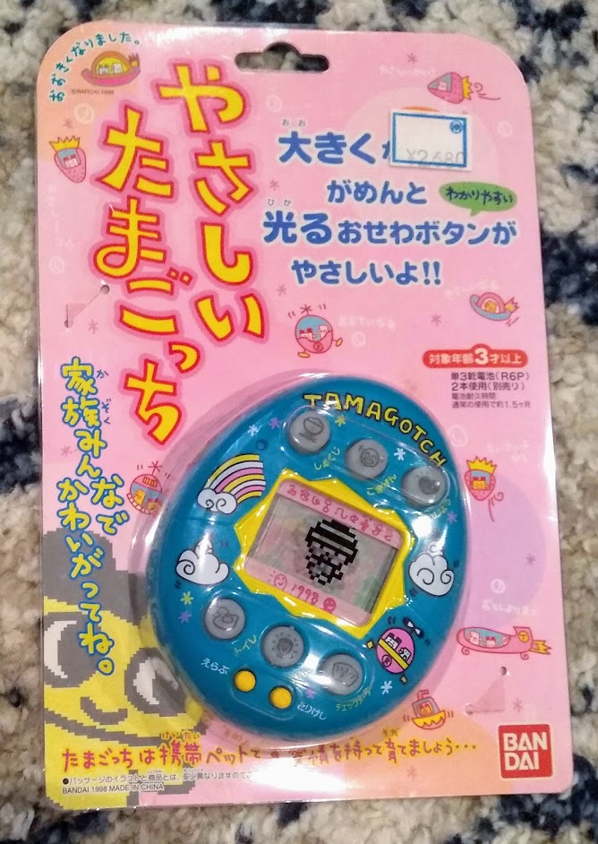 Welcome to my Yasashii Tamagotchi page! Here I'll tell you all about my experiences with the Yasashii Tamagotchi, one of the rarest vintage tamagotchis that released in September 1998. This page is heavily inspired by the websites Ginjirotchi.ca and Mimitchi.com. Please check them out!